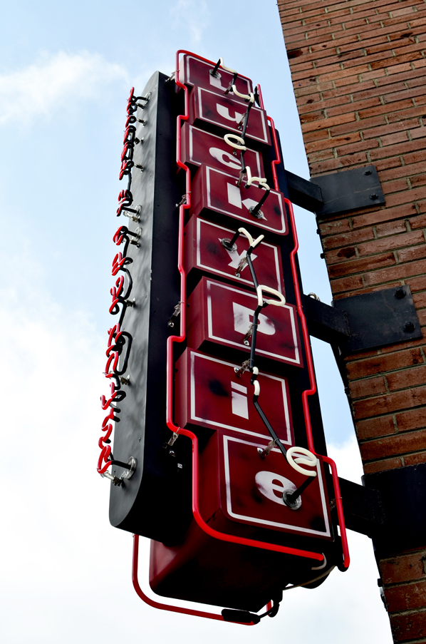 neon sign, outdoor sign, exterior sign, lit sign, blade sign, illuminated sign