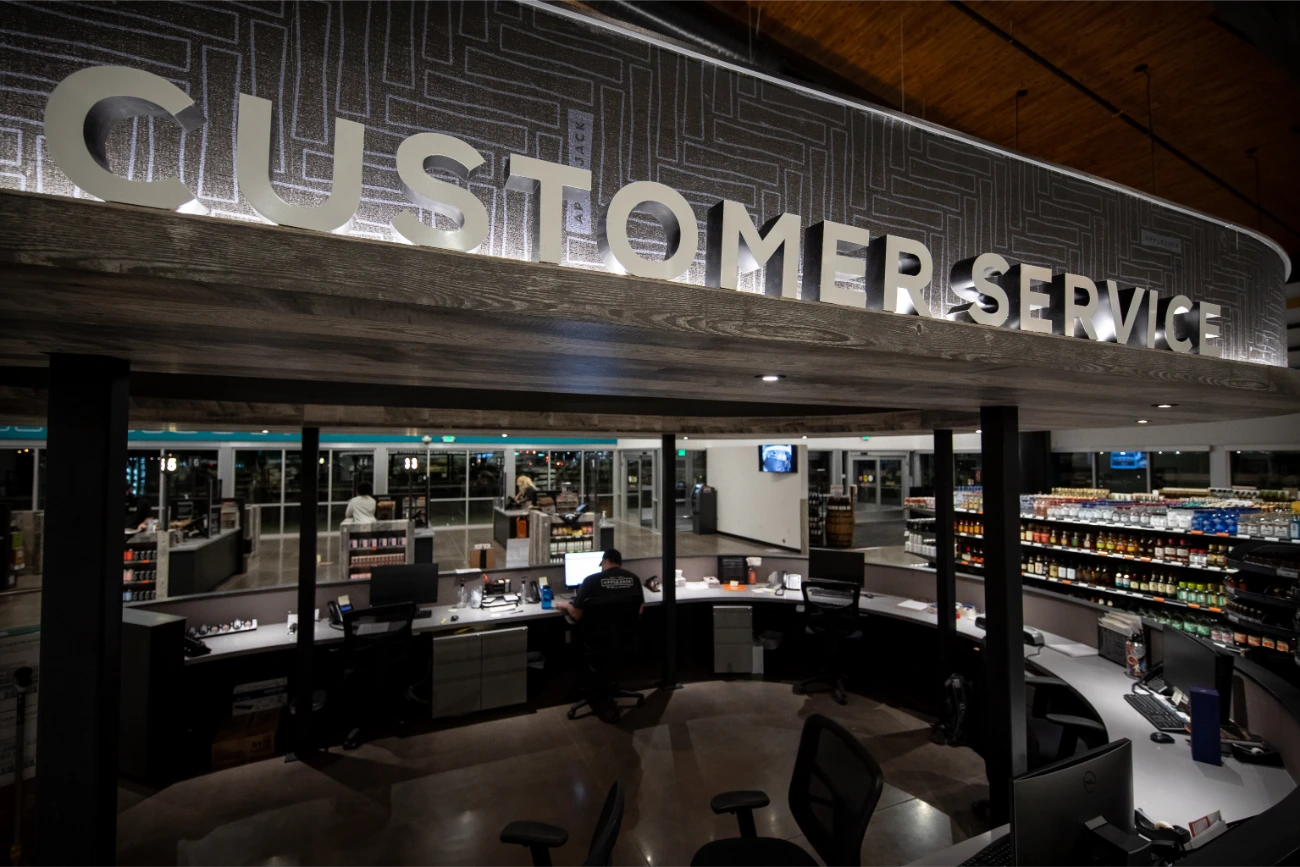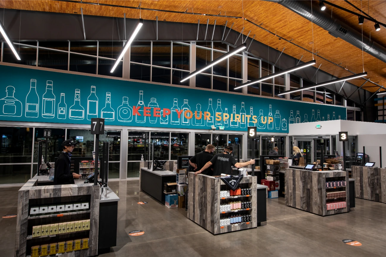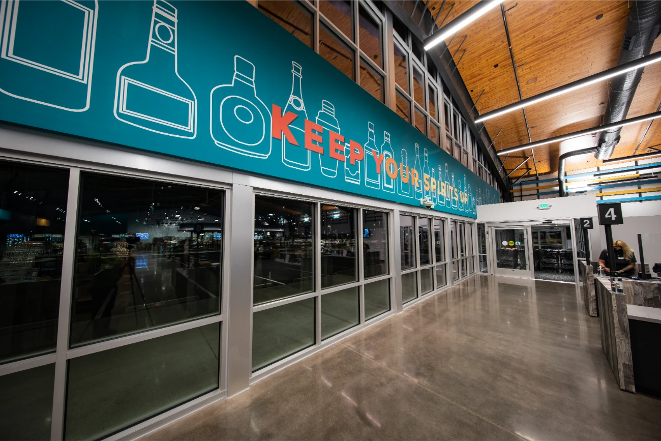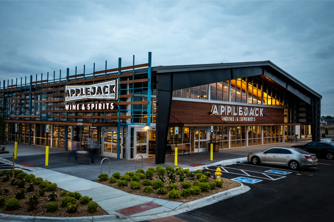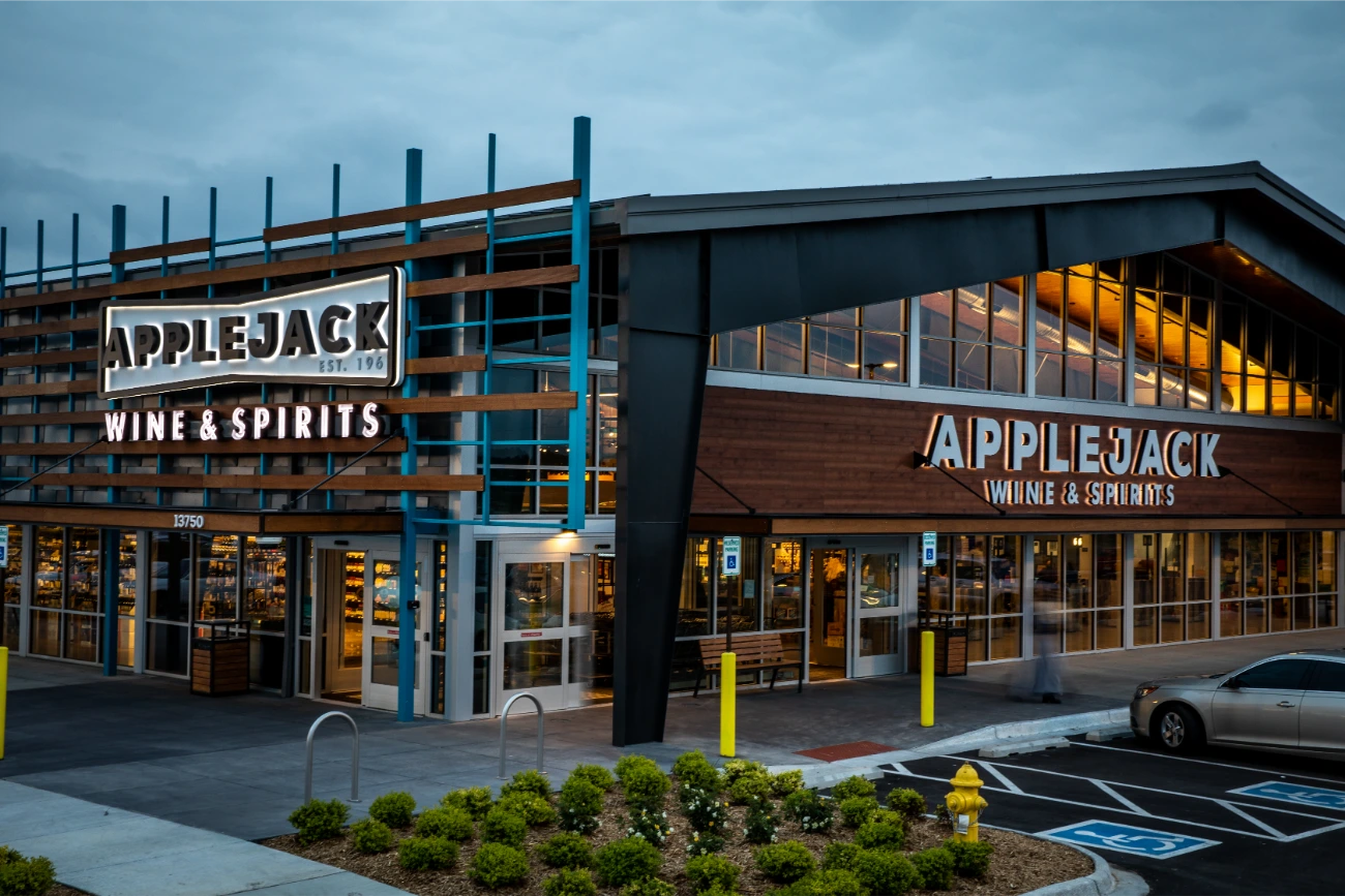 In their expansion towards the northern Denver region, Apple Jack Wine & Spirits reached out to BSC for assistance in establishing a fresh and distinctive signage. Having been founded in 1961, Apple Jacks already possessed a strong brand identity that perfectly complemented their new location. Collaborating closely with the BSC team, two expansive reverse-lit pan channel exterior signs were conceived and brought to life. Our team additionally created a vintage yet contemporary blade sign, serving as a guide for customers. In addition to the array of exterior signage, BSC also took part in the creation and installation of interior signage, ranging from FCO wall signs to comprehensive wall graphics. This balanced fusion of classical and modern design elements significantly contributed to elevating the overall building ambiance.