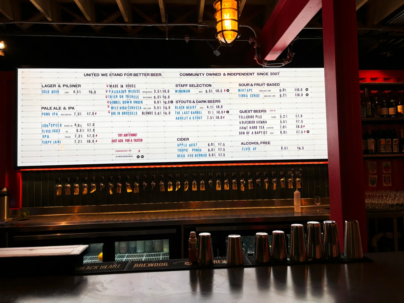 BSC Signs was proud to partner with BrewDog to bring their bold branding to life at their new Denver location. Our team fabricated and installed a full range of signage, from striking exterior branding to unique interior neon features that enhance the BrewDog experience. For the exterior, we installed illuminated wall signs and a custom projecting sign featuring BrewDog’s signature logo, ensuring strong visibility from every angle. Inside, the space comes to life with vibrant