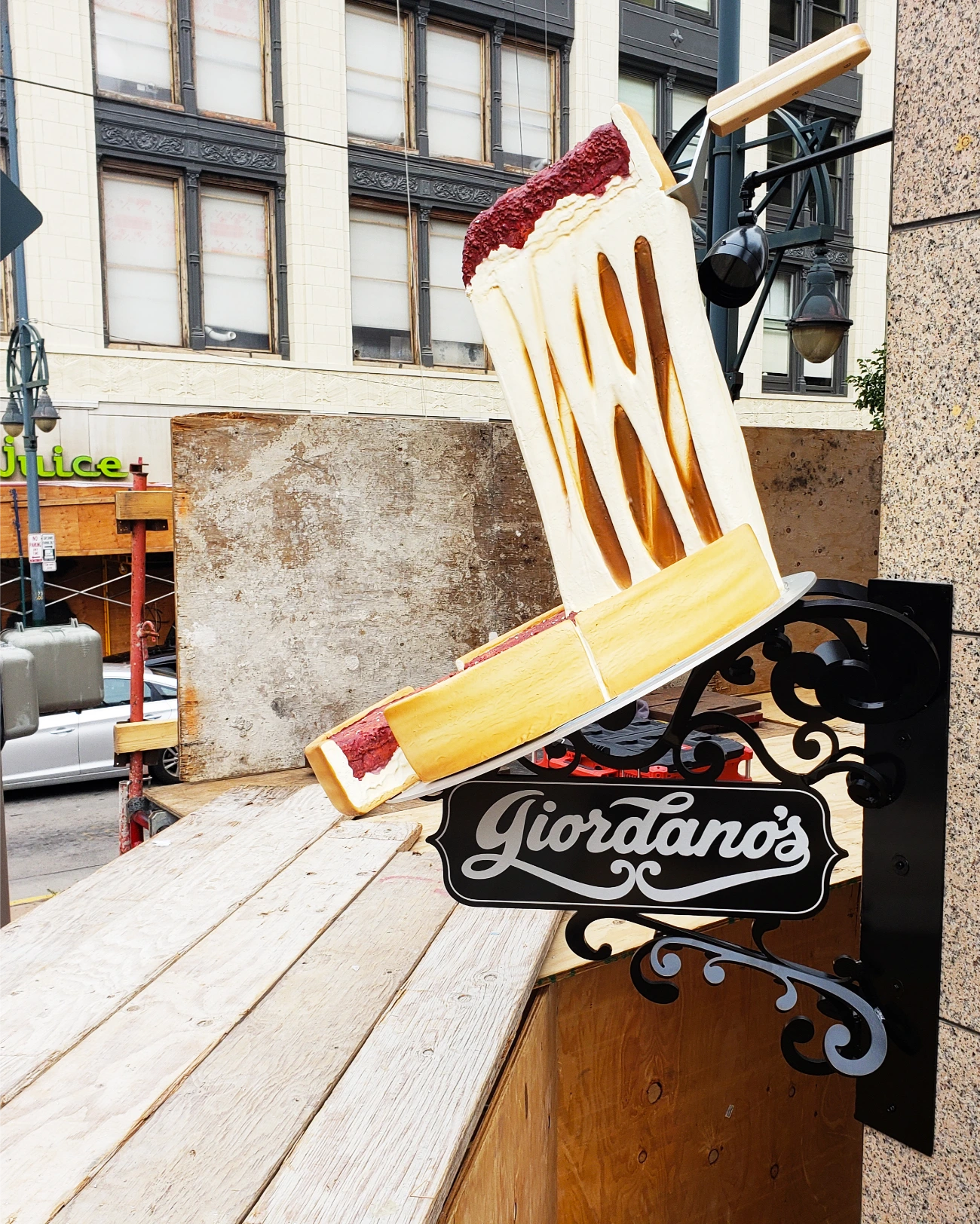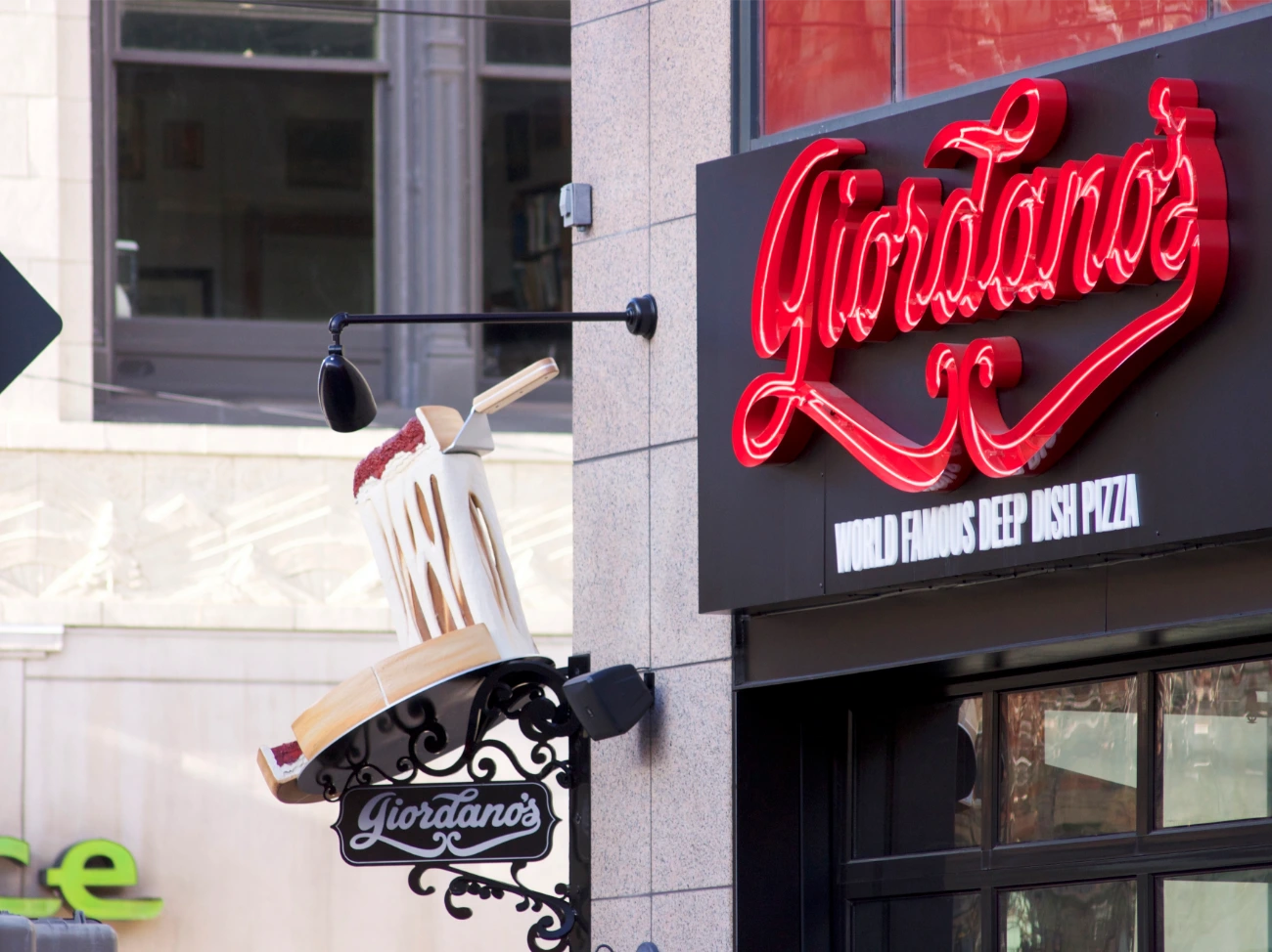 One of Chicago’s renowned pizzerias, Giordano’s, made its debut in Colorado, specifically in the vibrant heart of Denver’s 16th Street Mall in Downtown. BSC Signs was entrusted with the mission of crafting a remarkable 3D blade sign that would encapsulate the rich history and pizza style that Giordano’s was celebrated for. BSC Signs team successfully achieved an attention-grabbing, hand-painted 3D blade sign, complemented by retro yet contemporary open-faced neon pan channel signs.