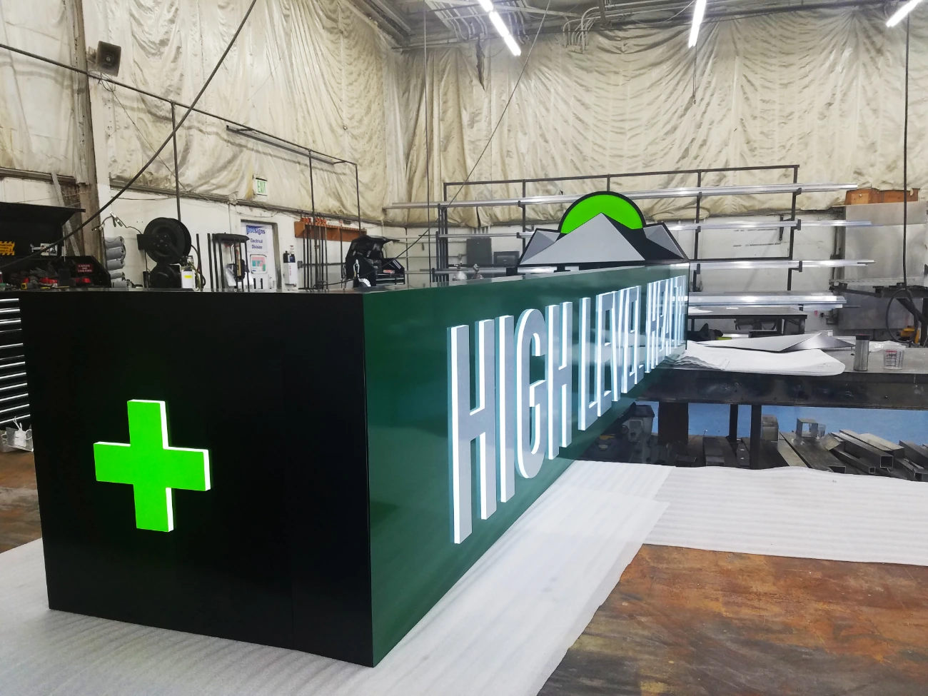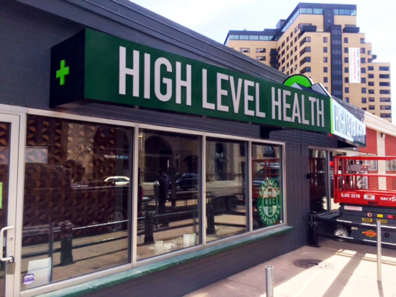 High Level Health has earned the distinction of being the most awarded cannabis company in the nation when it comes to product quality, establishing itself as the benchmark for excellence in the industry. BSC signs scope of work included the installation of a 3-dimensional projecting wall sign designed to capture the attention of passing traffic. This sign features push-thru lettering and a secondary blade sign cabinet, showcasing a level of signage that goes beyond the High Level Health logo brand