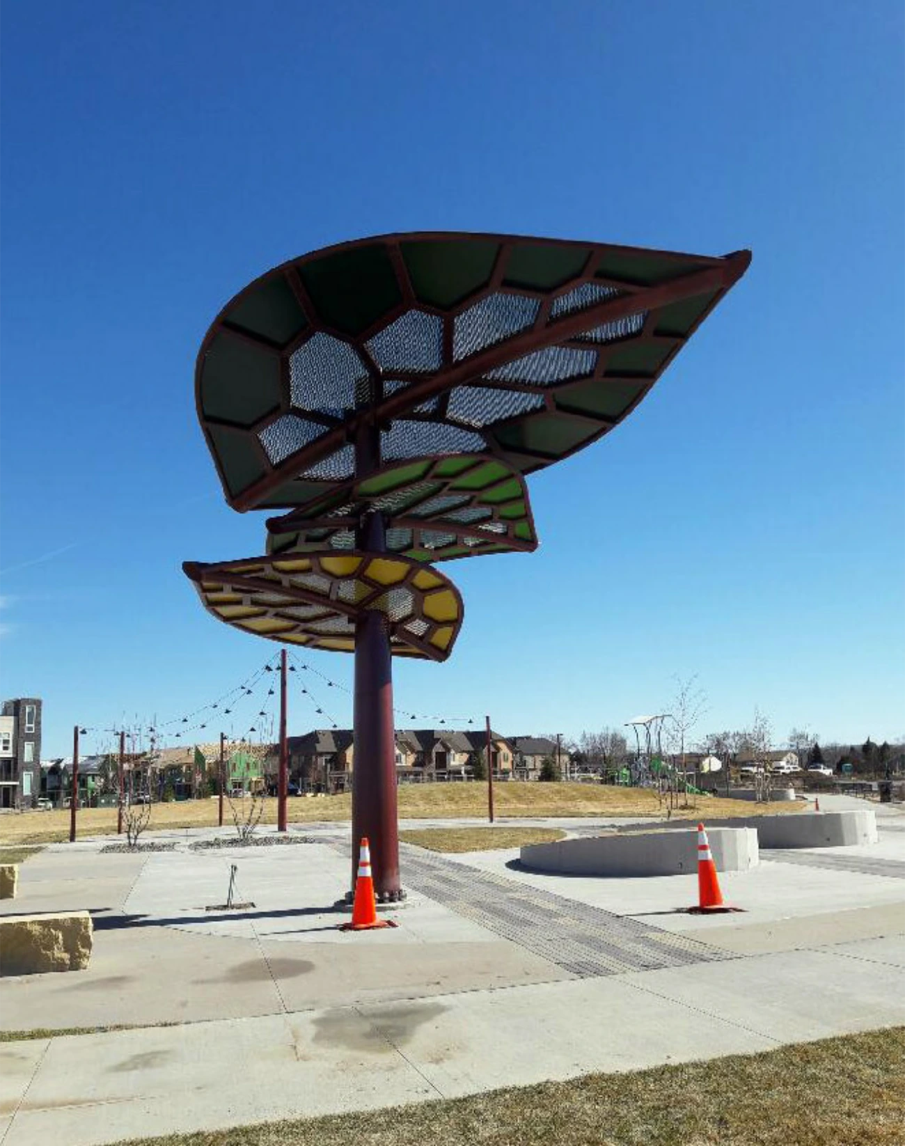 Littleton Village Public Art Project – An Award-Winning Showcase of Creativity and Craftsmanship In 2017-2018, BSC Signs partnered with Norris Design of Denver to bring the Littleton Village Public Art Project to life, crafting two imaginative 3D leaf canopy structures for the central park of this 77-acre residential development. These massive, colorful sculptures, each weighing 11,000 pounds, tower over visitors, inspiring a sense of wonder and playfulness. The project earned BSC Signs the prestigious Best In Show award, a testament to the innovative collaboration and craftsmanship involved.