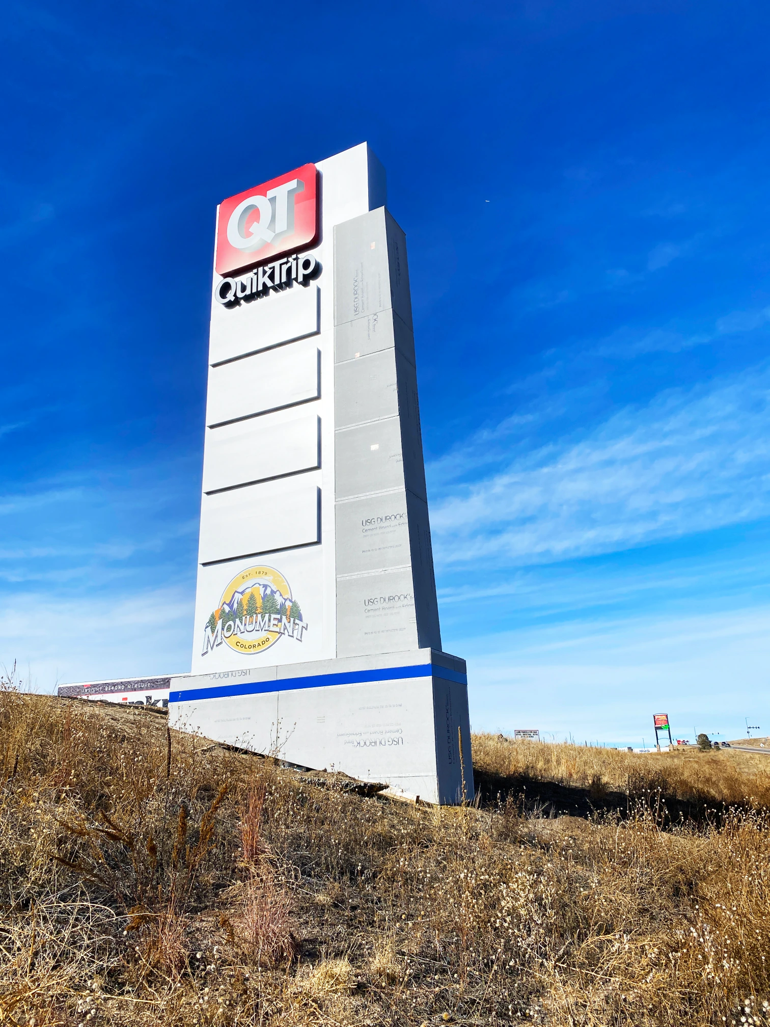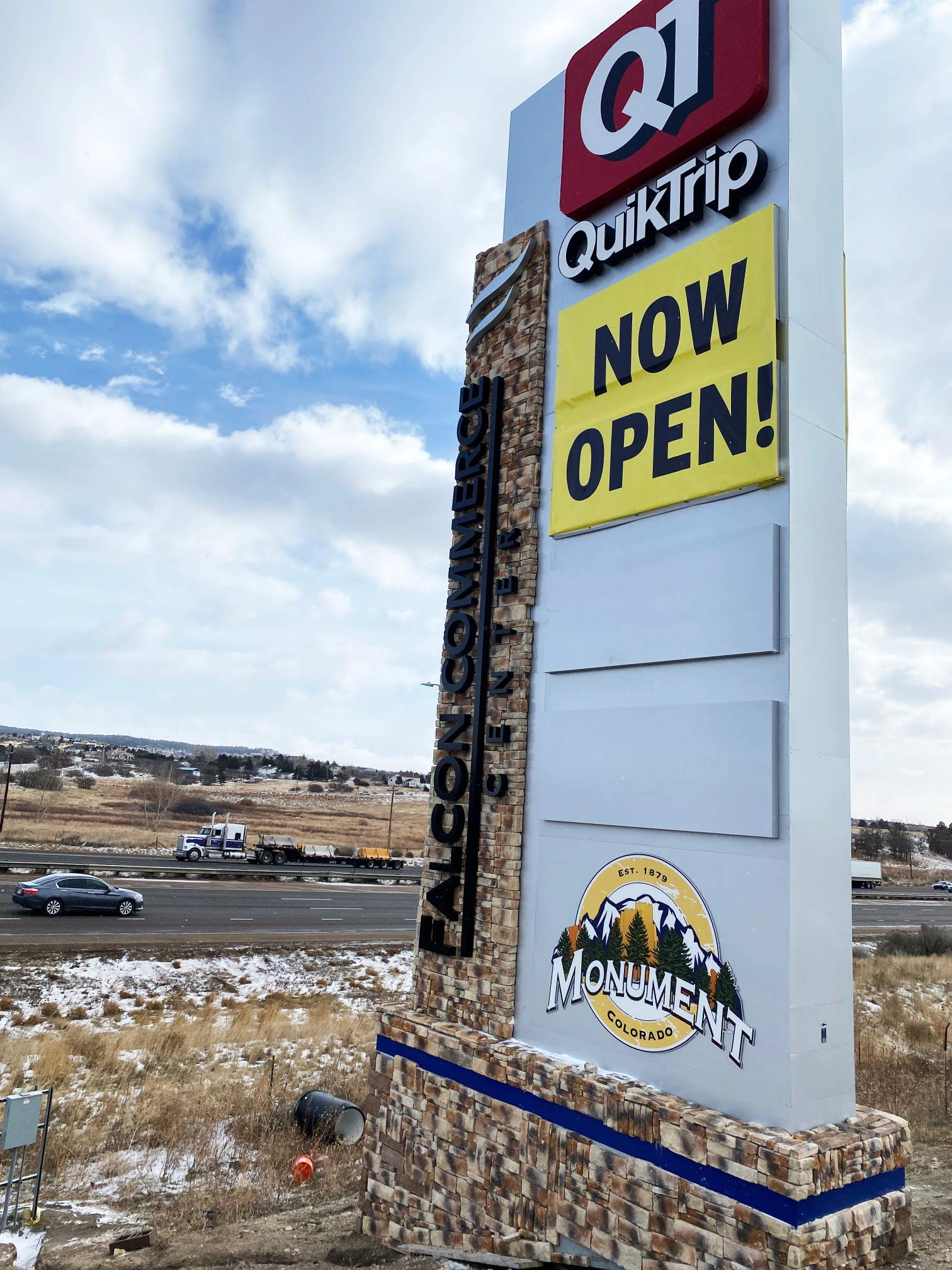 BSC Signs was thrilled to partner with QuikTrip to bring their vision to life at the new Falcon Commerce Center in Monument, Colorado. We designed, fabricated, and installed a 35-foot tall pylon sign that not only highlights the QuikTrip gas station but also serves as a beacon for future tenants in this expansive +224-acre development. Located at the bustling southwest corner of I-25 and Baptist Road, just north of Colorado Springs, the sign provides crucial visibility for businesses in this rapidly growing area.