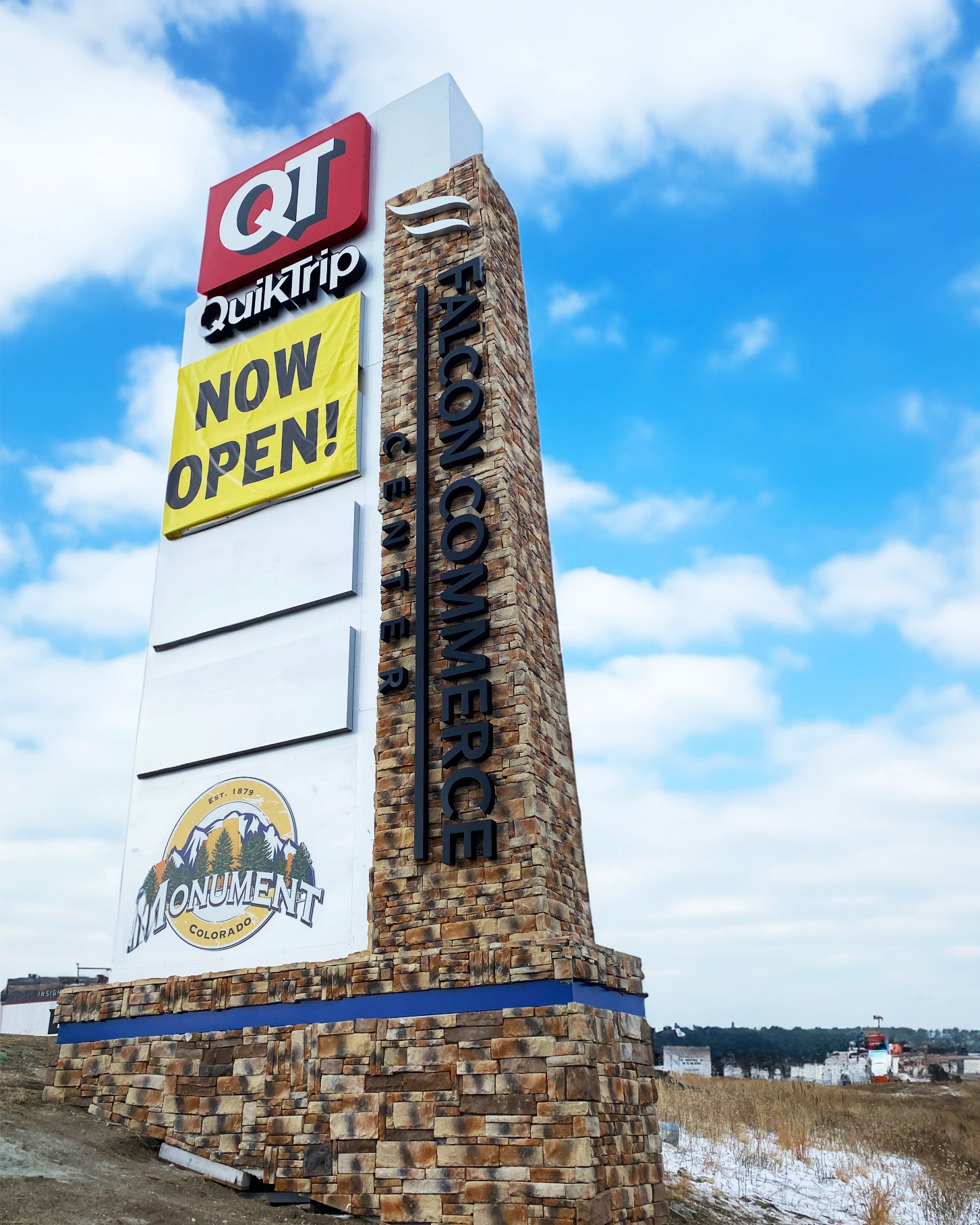 Crafted with bold pan channel letters, the freestanding sign is both eye-catching and modern, helping QuikTrip make a strong first impression while supporting visibility for upcoming businesses in the Falcon Commerce Center. This mixed-use development offers space for commercial, industrial, and office use, and the sign was designed to evolve with the center as it expands. We’re proud to have created a landmark that captures attention, promotes future growth, and aligns with the long-term vision for this thriving new community